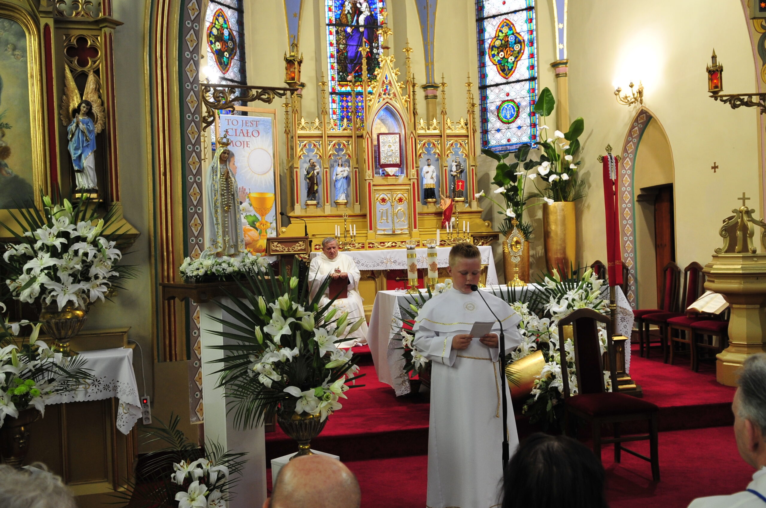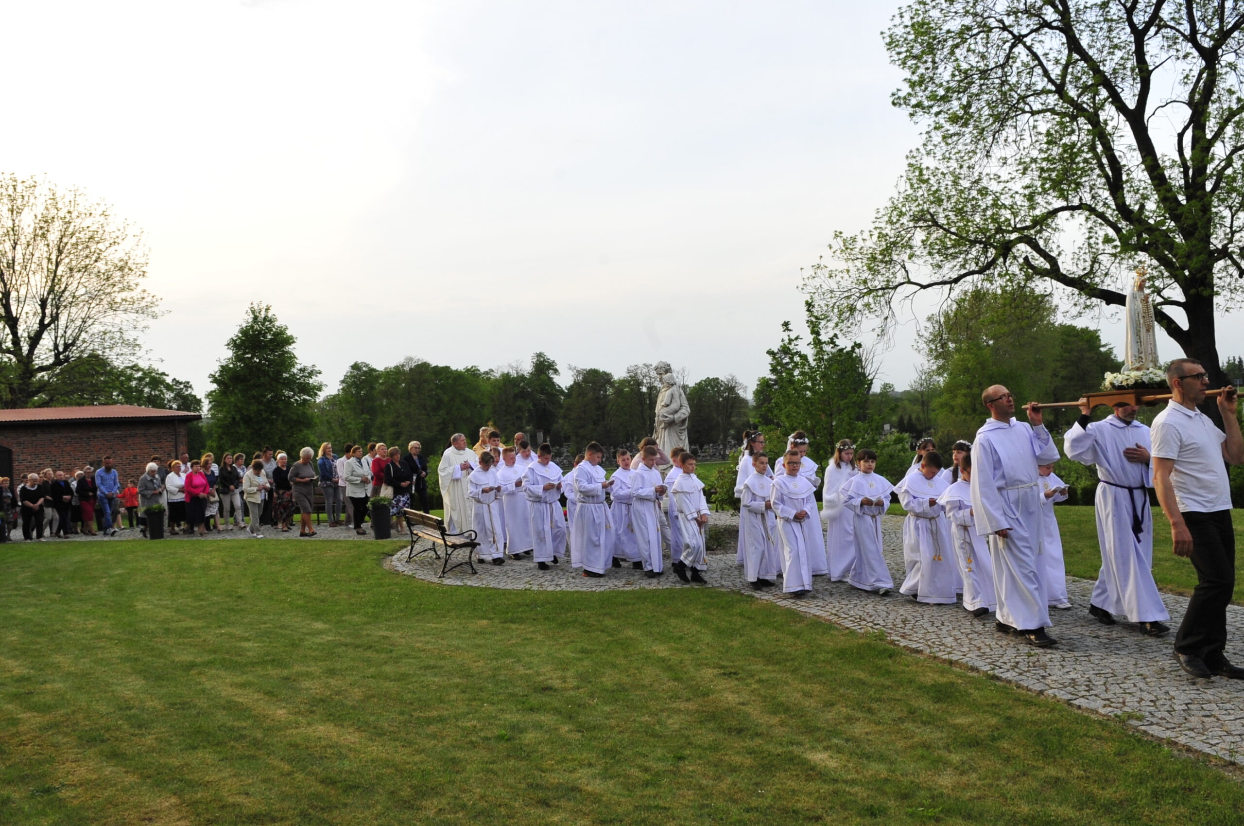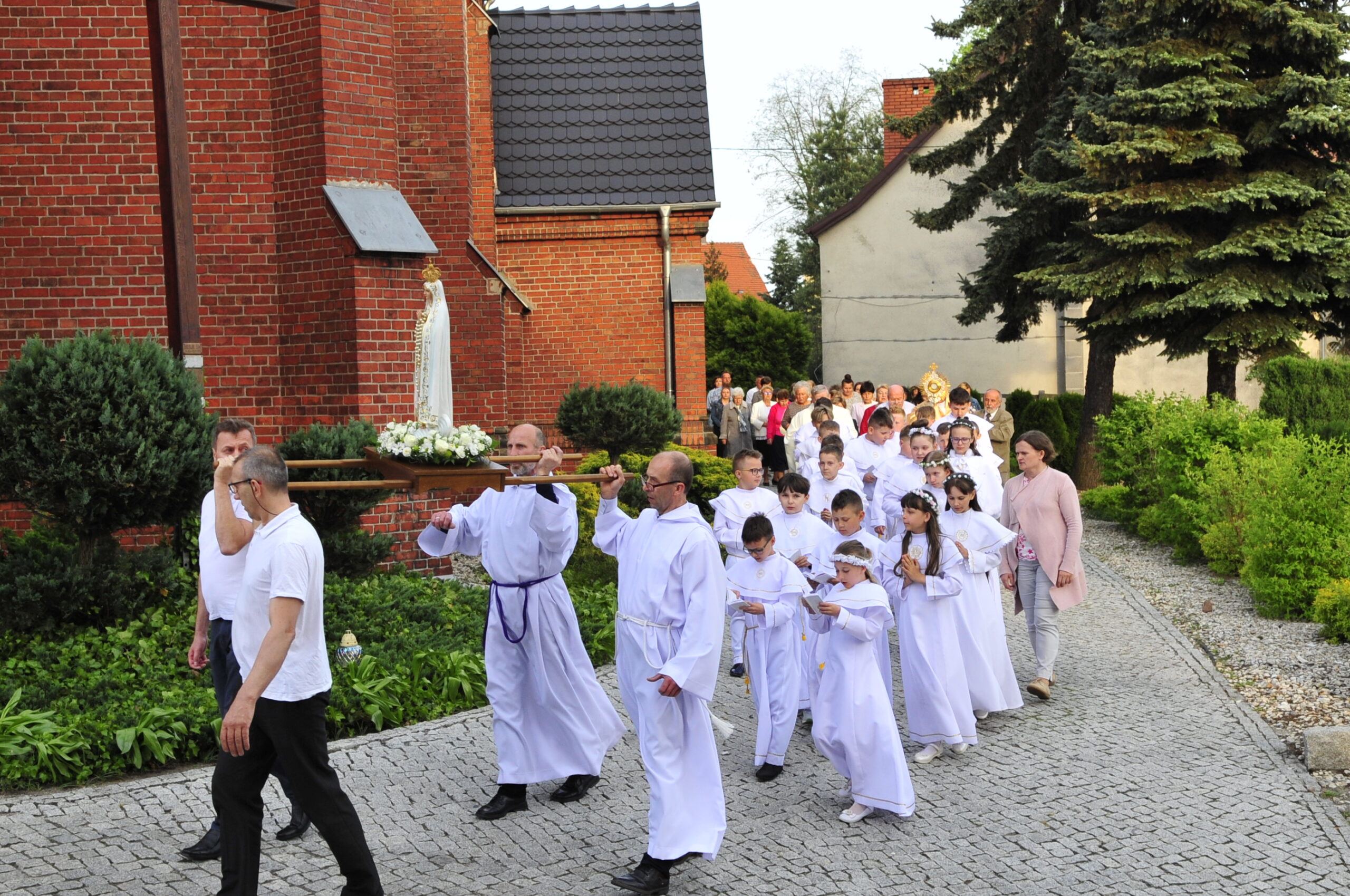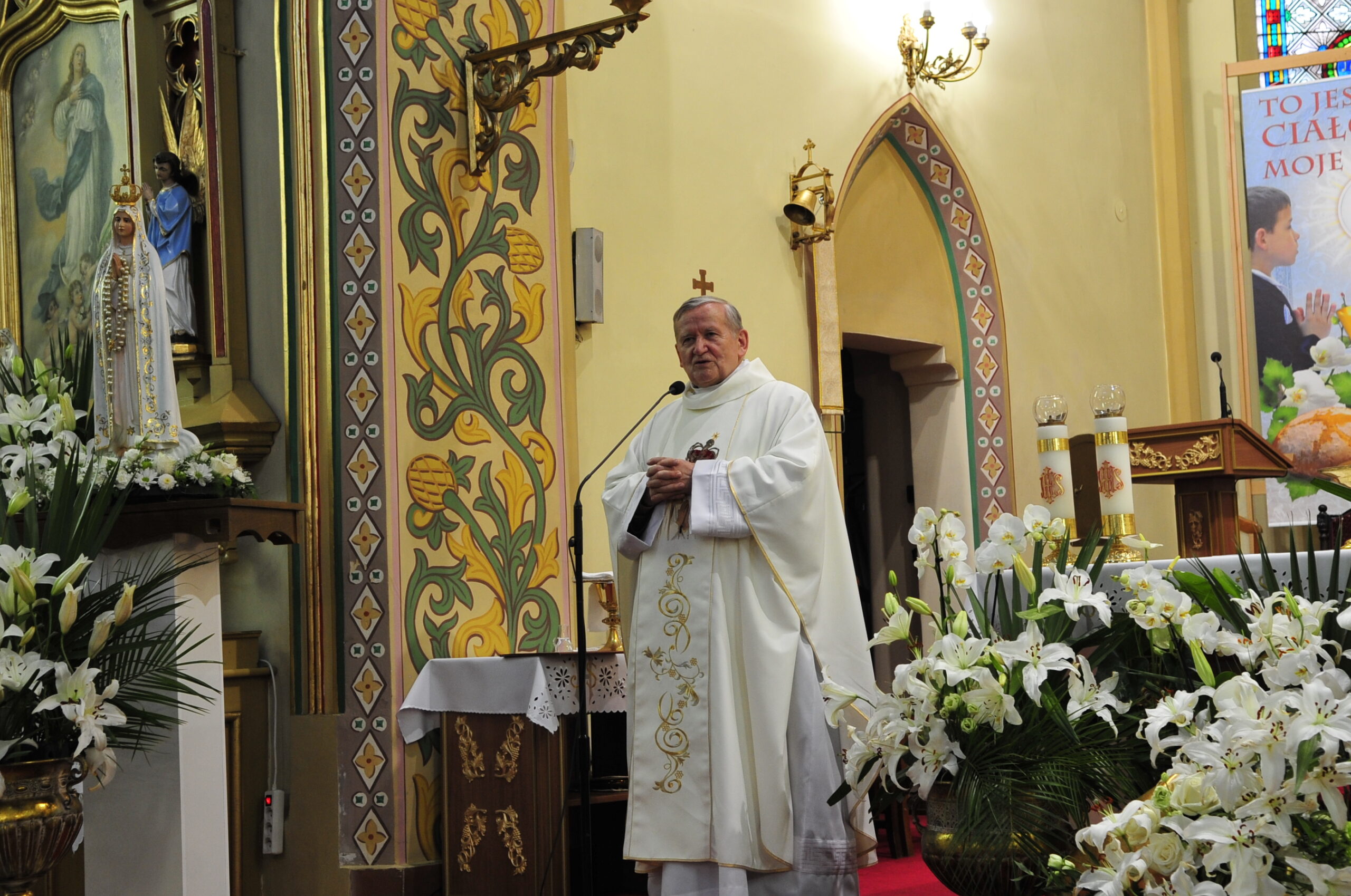 Dzieci Komunijne uczestniczyły w uroczystej Mszy ku czci Matki Boskiej Fatimskiej podczas której przewodniczył i słowo Boże wygłosił ksiądz Kazimierz Rapacz.