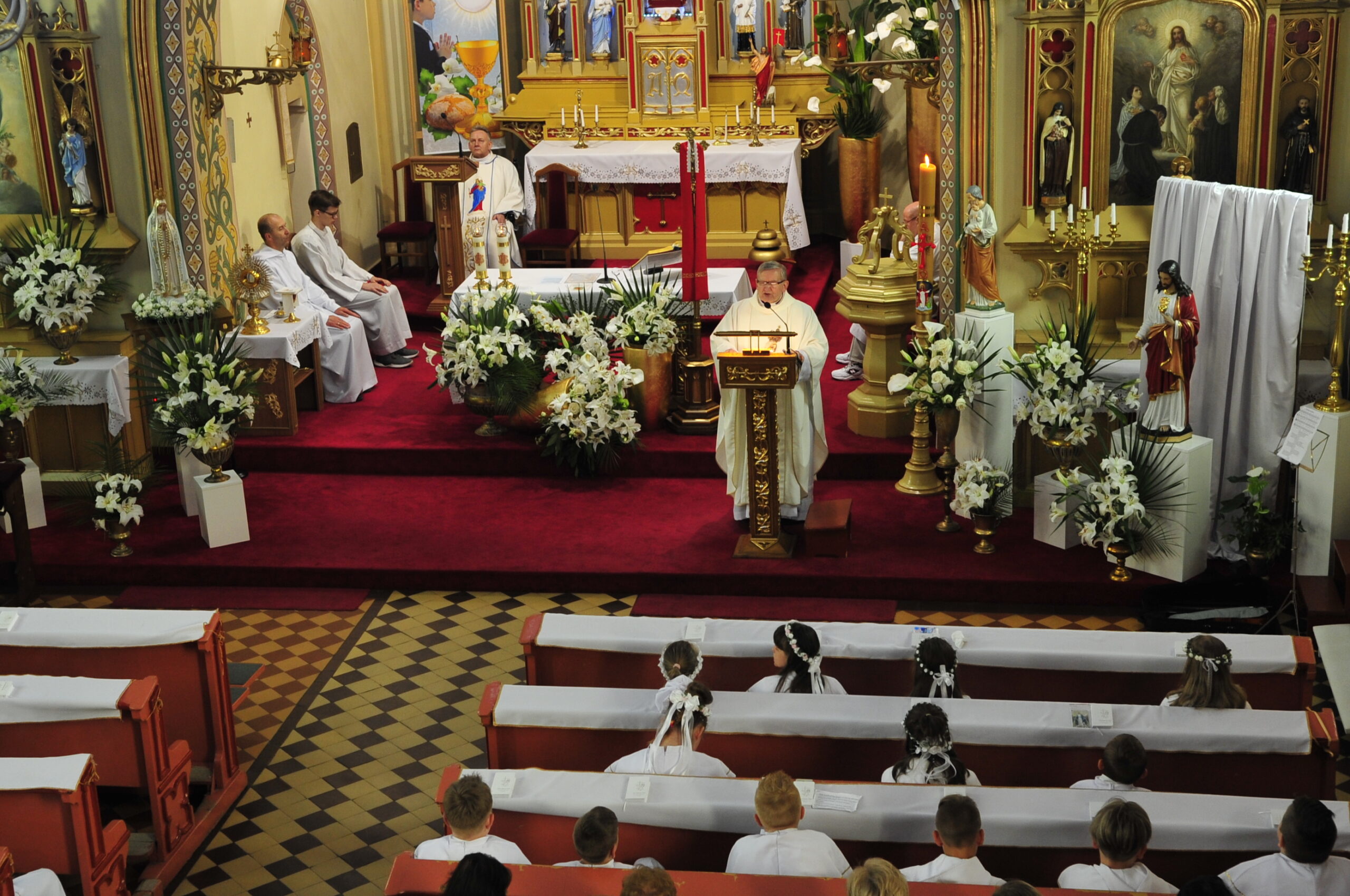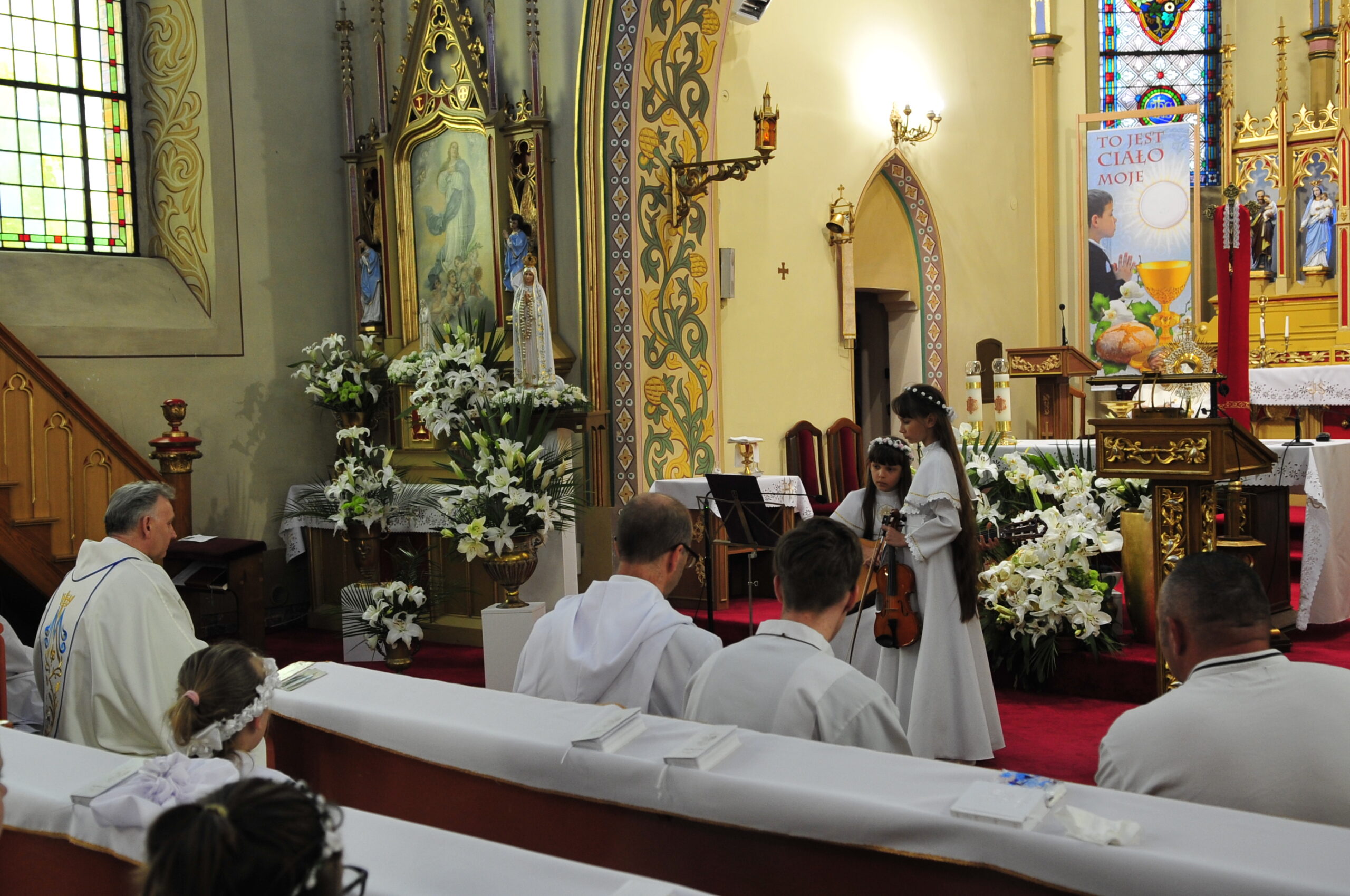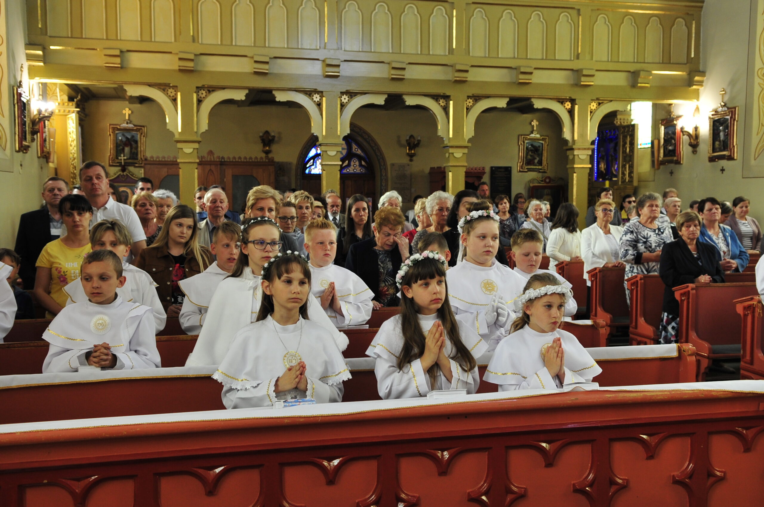 Dzieci Komunijne uczestniczyły w uroczystej Mszy ku czci Matki Boskiej Fatimskiej podczas której przewodniczył i słowo Boże wygłosił ksiądz Kazimierz Rapacz.