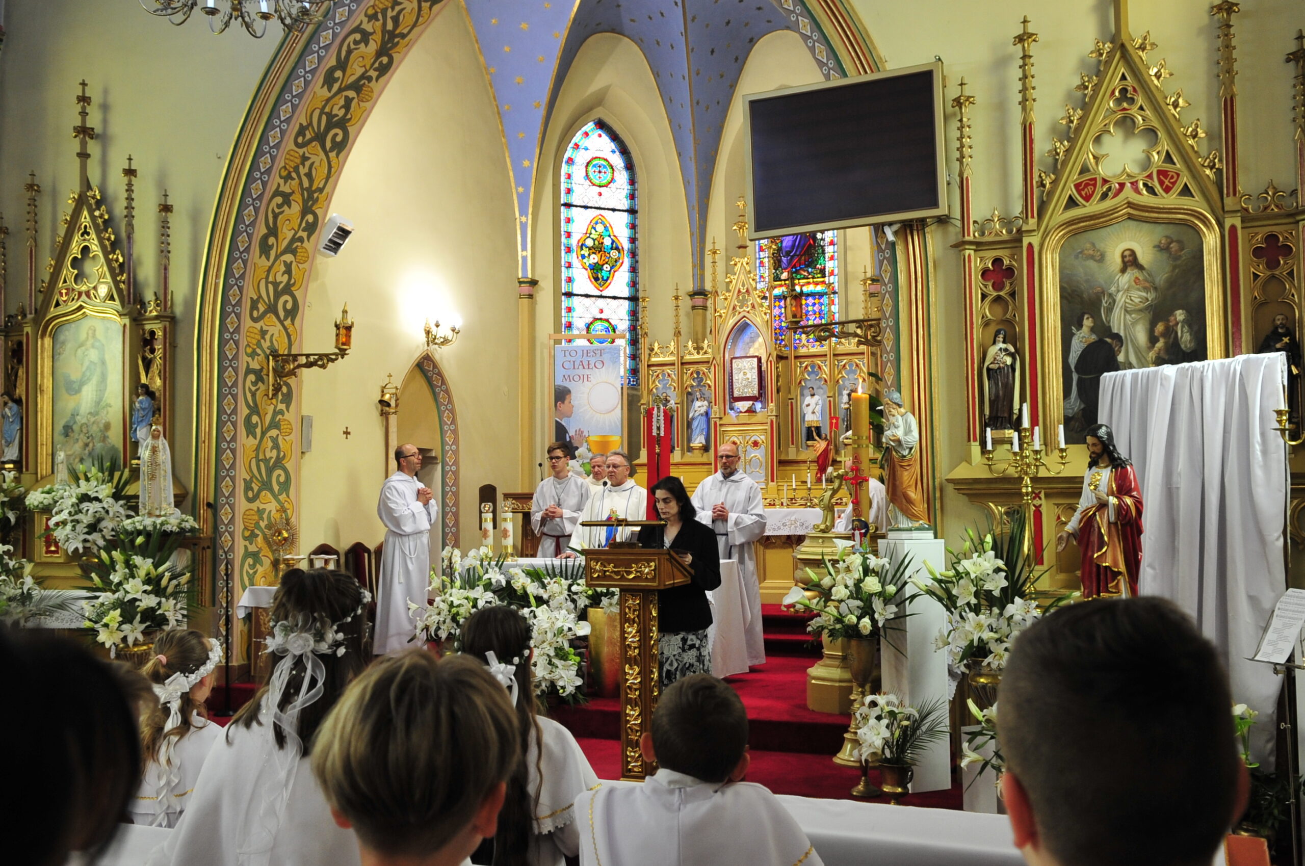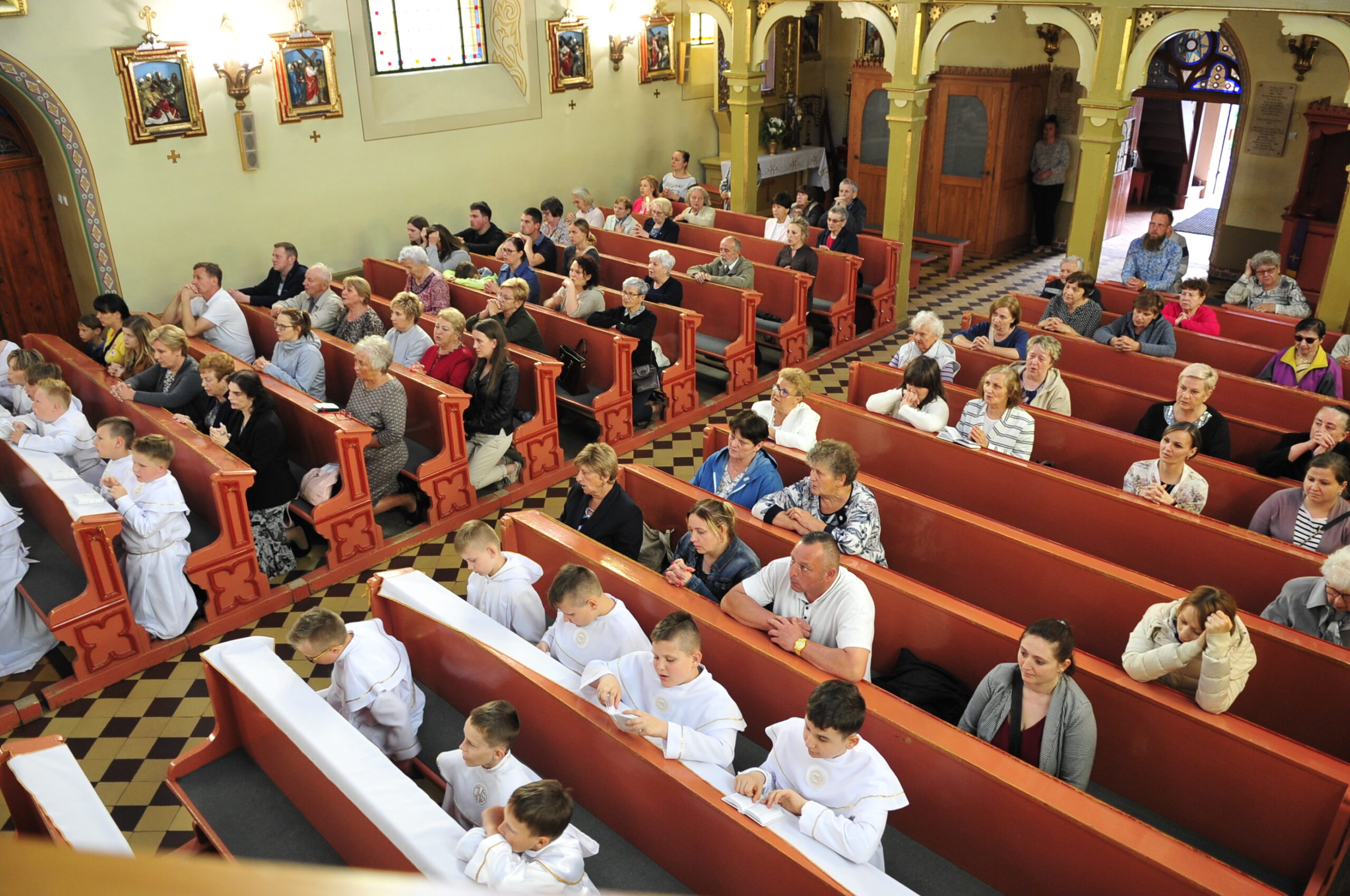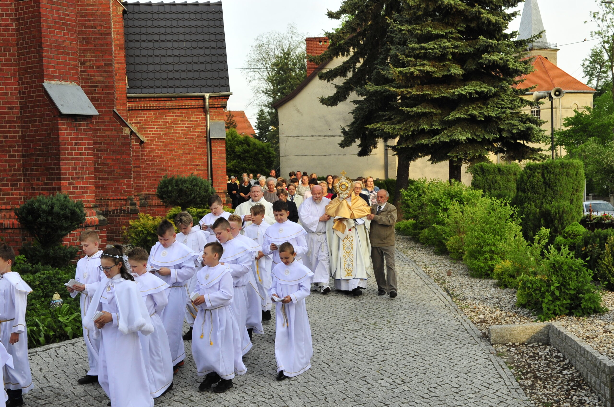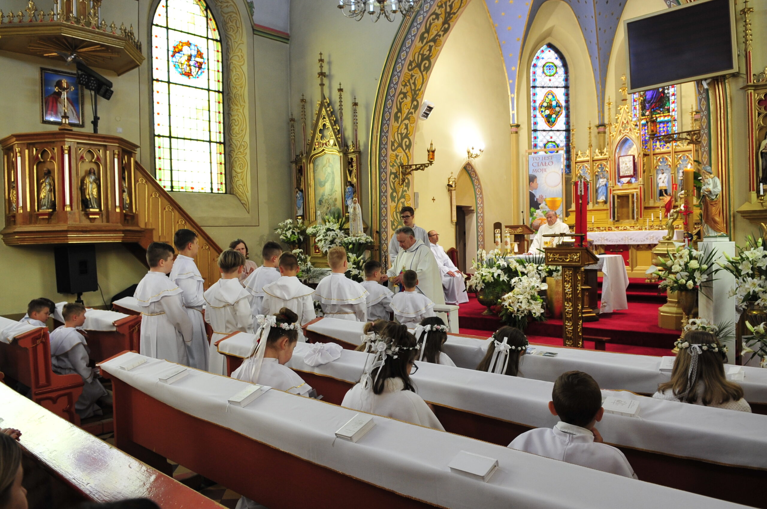 Dzieci Komunijne uczestniczyły w uroczystej Mszy ku czci Matki Boskiej Fatimskiej podczas której przewodniczył i słowo Boże wygłosił ksiądz Kazimierz Rapacz.
