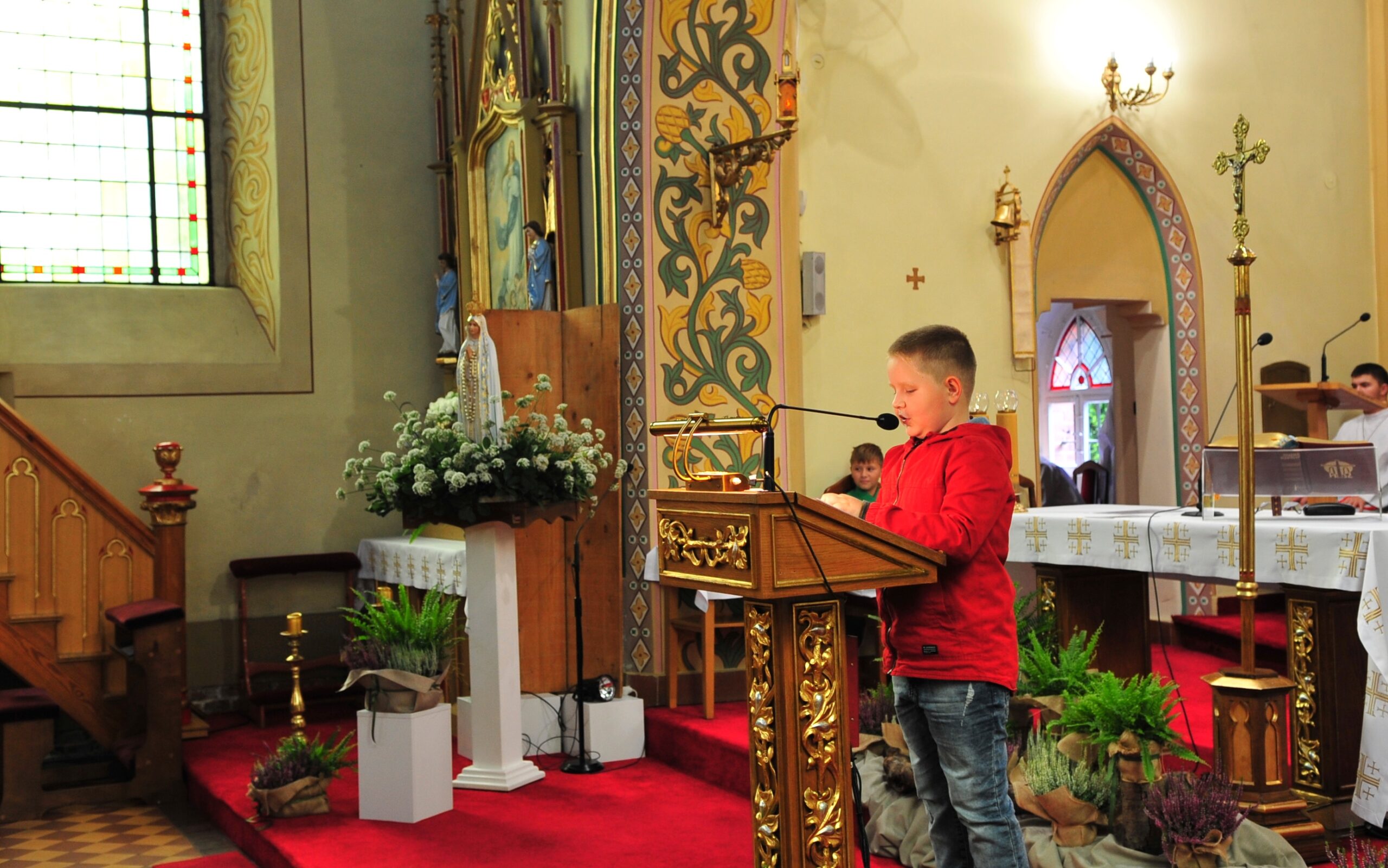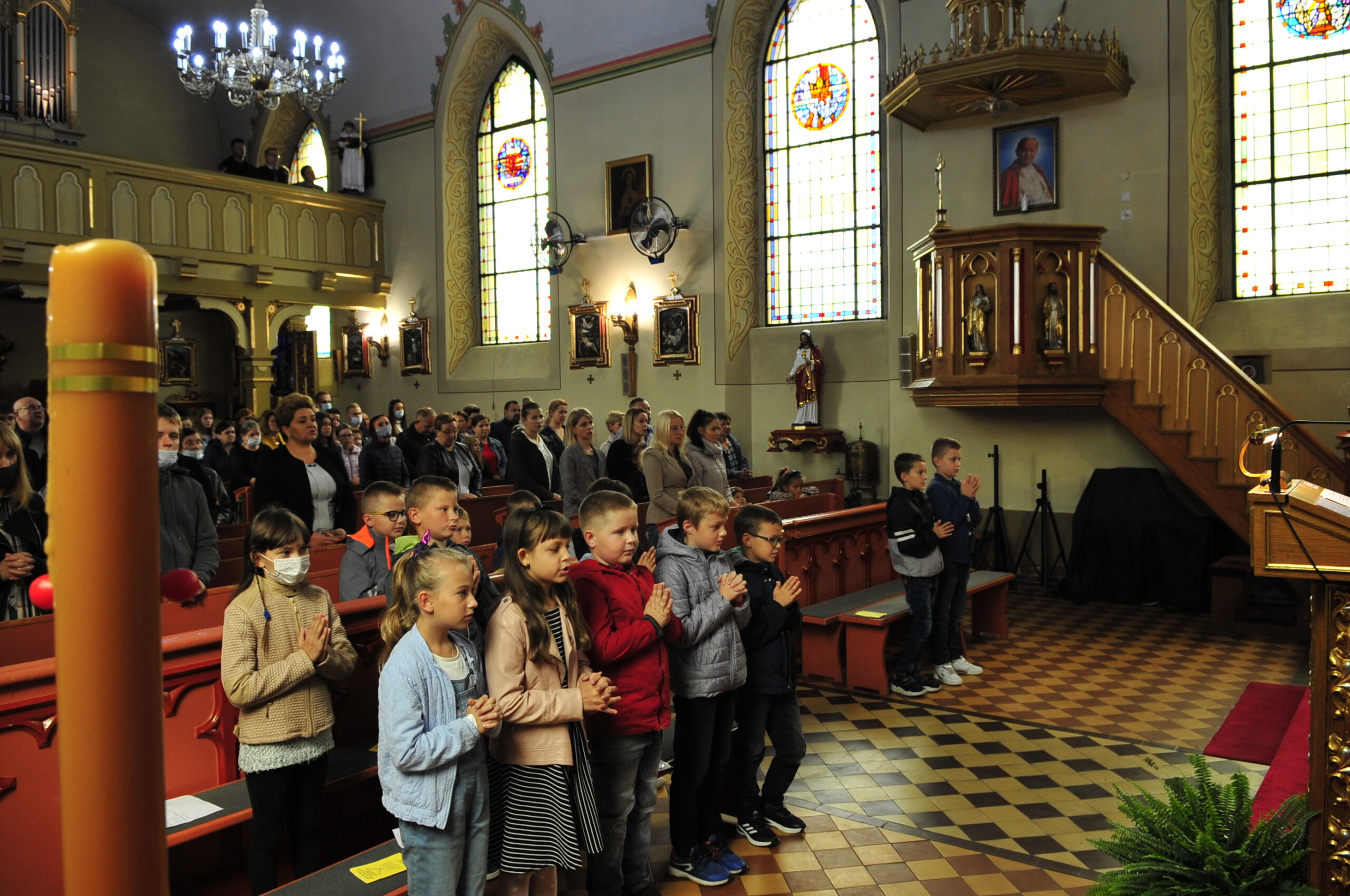Uczestnictwo dzieci we Mszy Świętej które w przyszłym roku mają przystąpić do I Komunii Świętej. Po Mszy Świętej odbyło się spotkanie organizacyjne dla rodziców i ich dzieci przystępujących do I Komunii Świętej