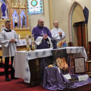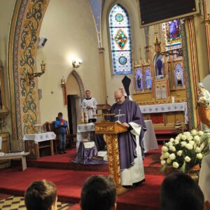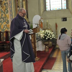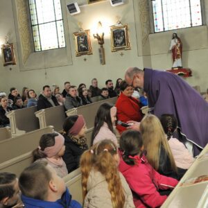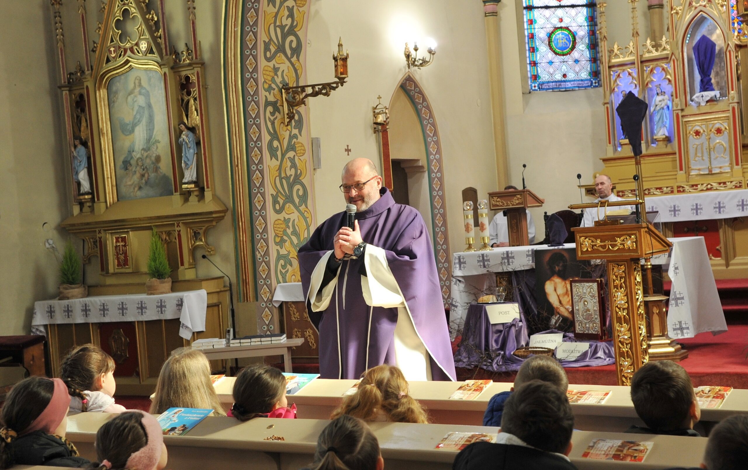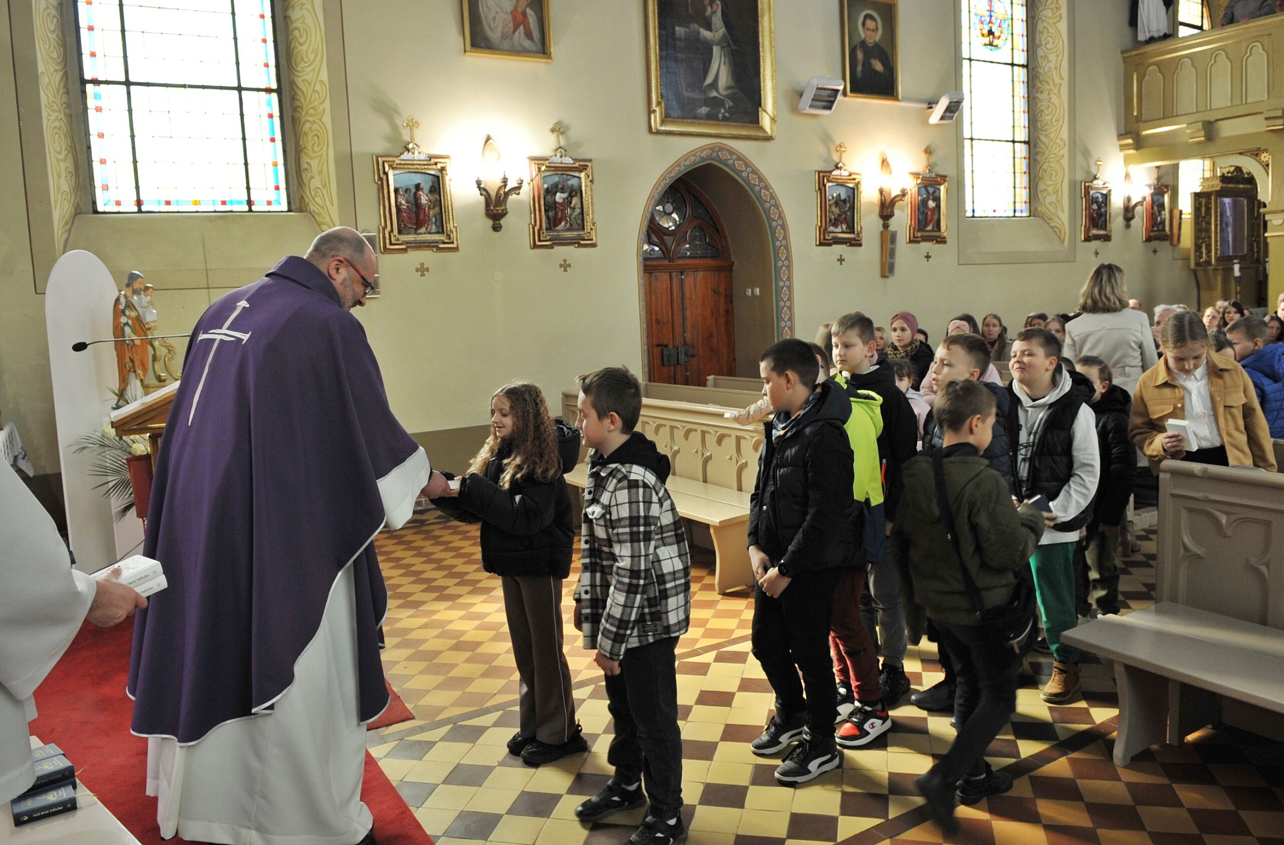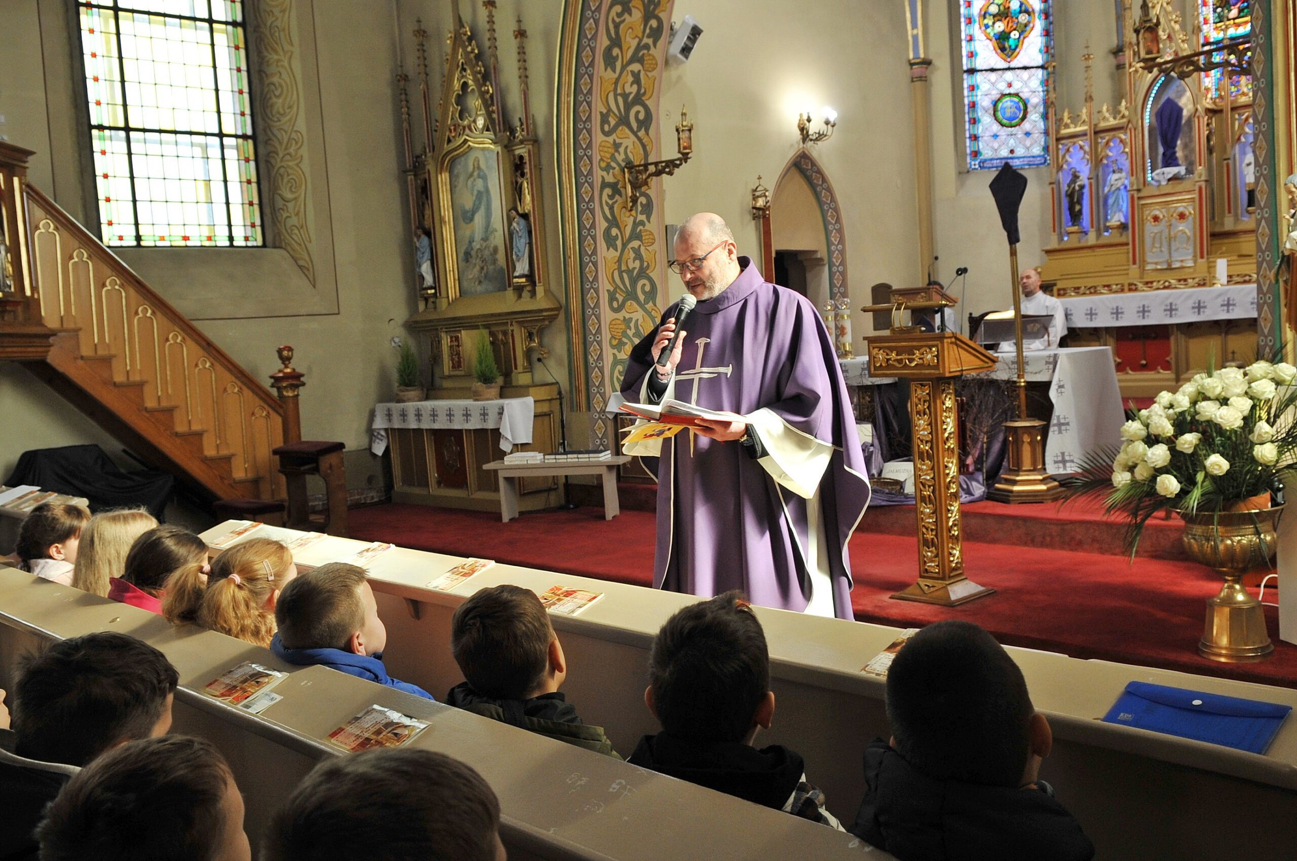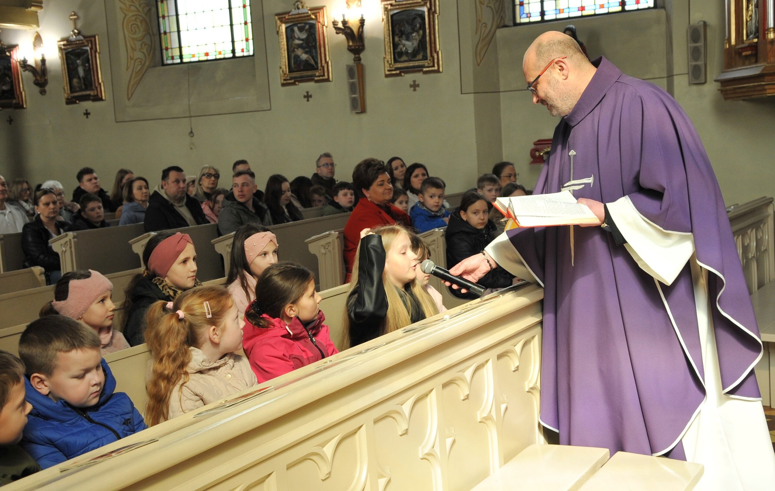 Proboszcz ks. Mariusz Kostrzewski zwracał się do wiernych tymi słowami a podczas poświęcenia modlitewników dzieciom przygotowującym się od I komunii prosił wiernych aby nie zapomnieli gdzie są ich książeczki.
