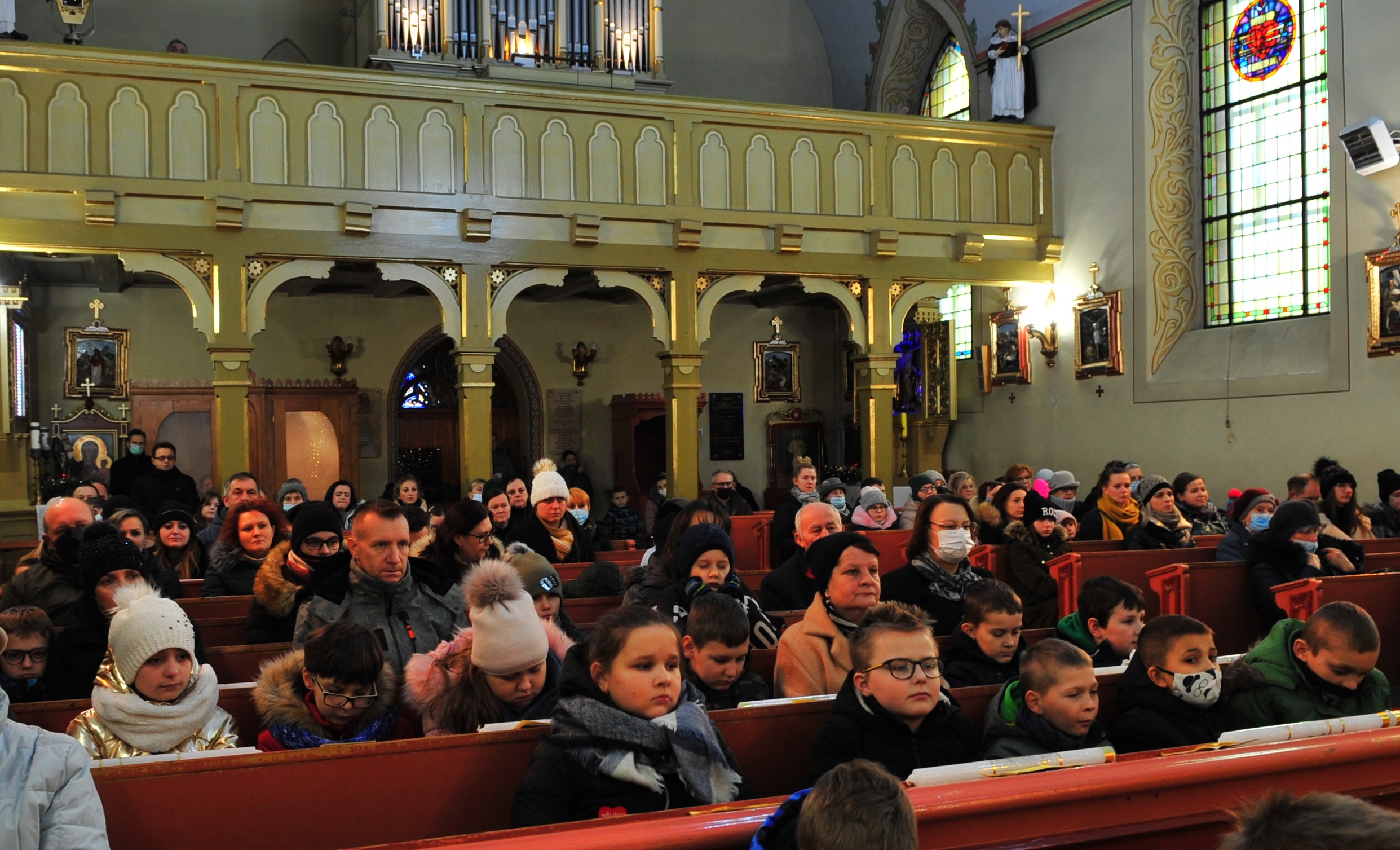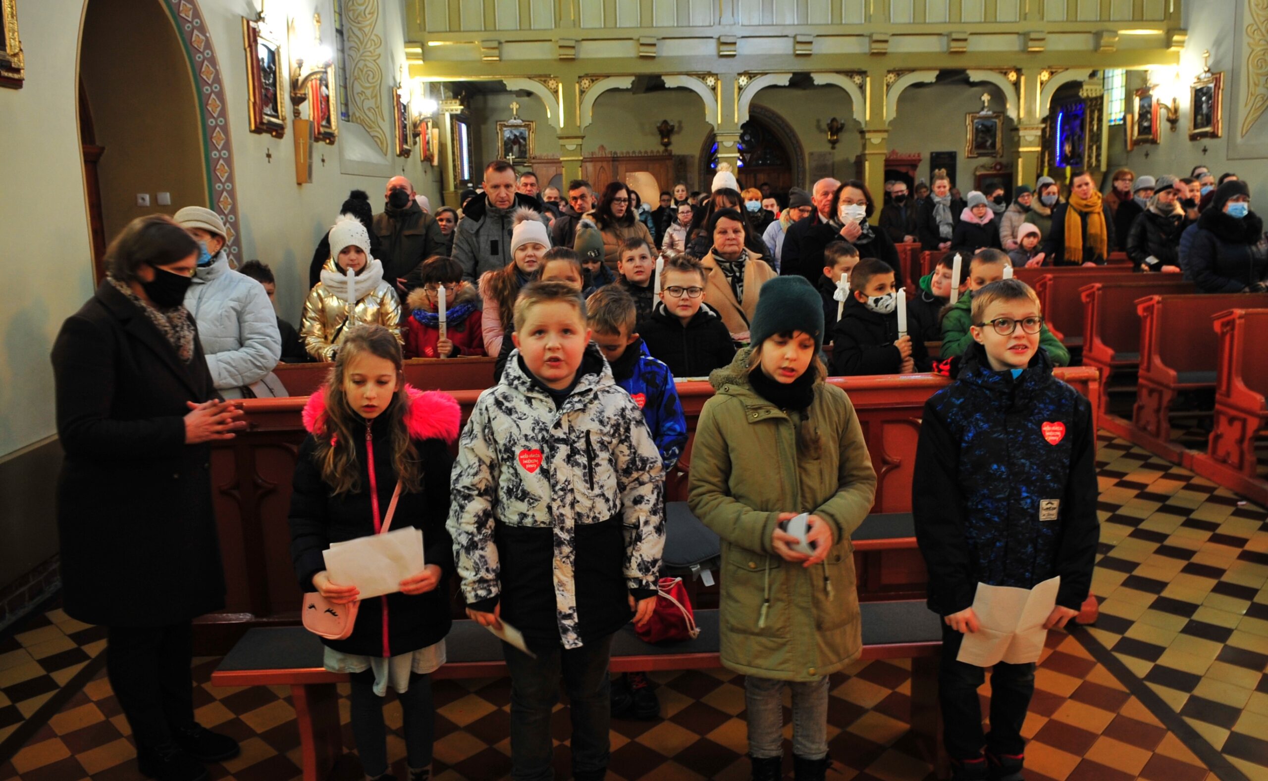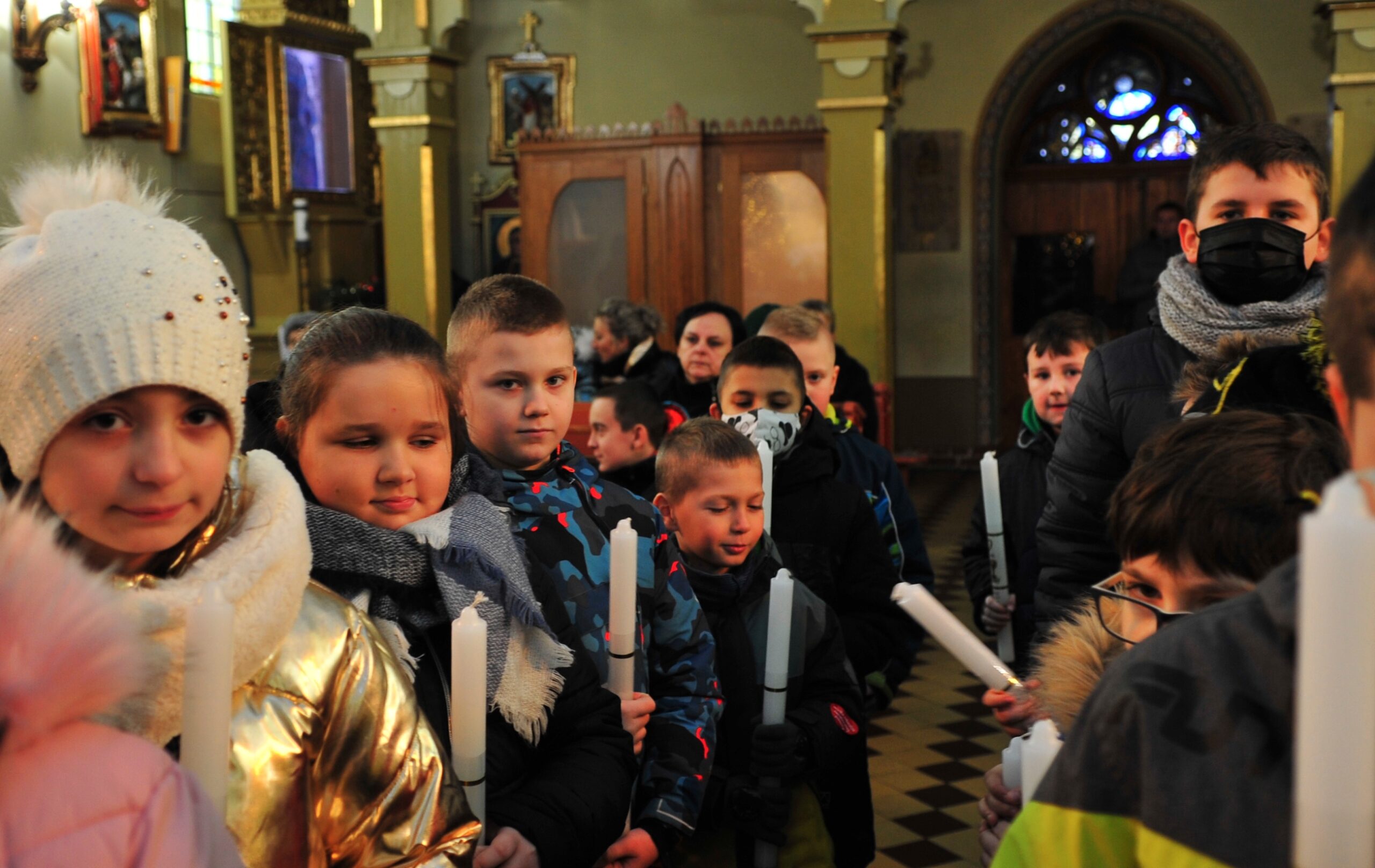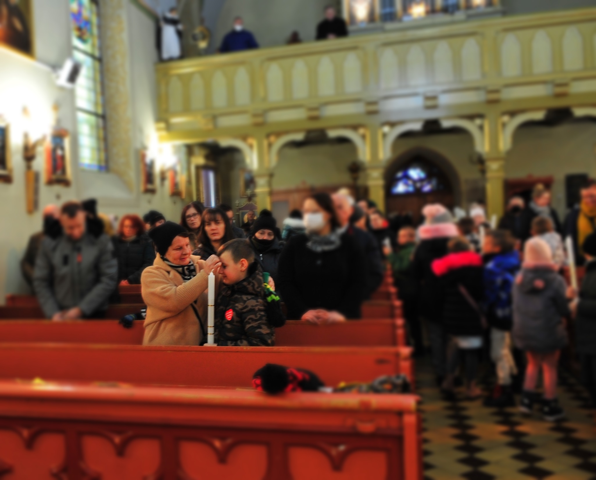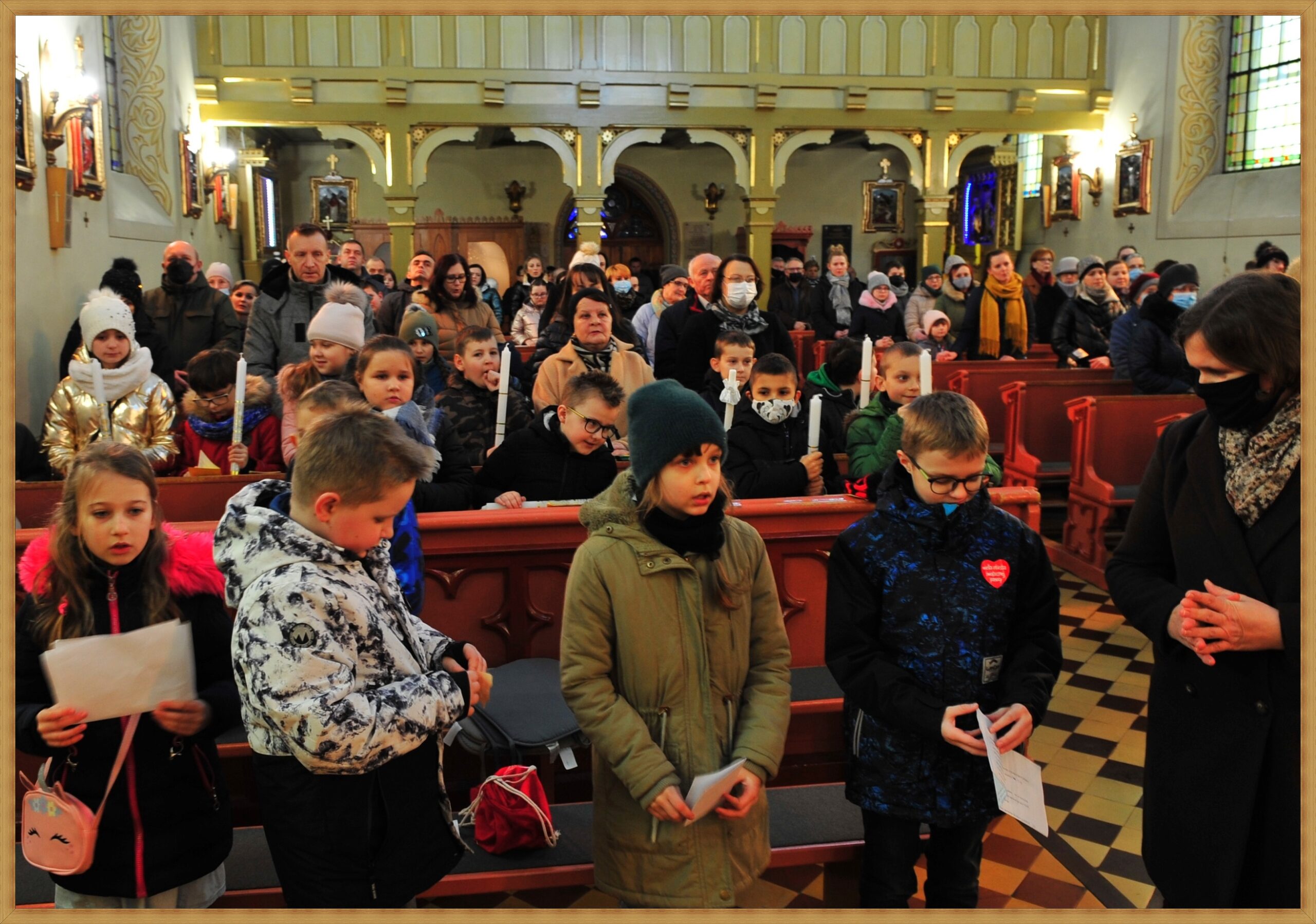 W niedzielę 30 stycznia br. na  Mszy św. o godz. 11:30, dzieci klas trzecich, które w tym roku przygotowują się do przyjęcia I Komunii św., uczestniczyły w obrzędzie poświęcenia świec komunijnych.