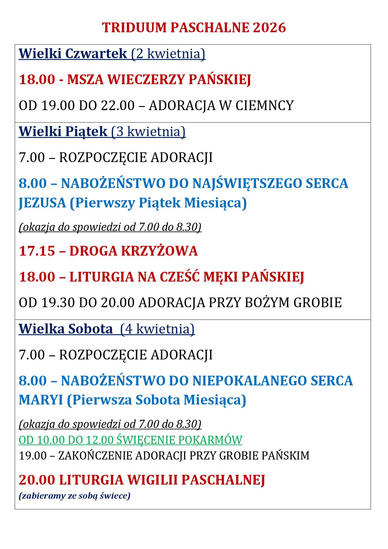 Program Triduum Paschalne 2026